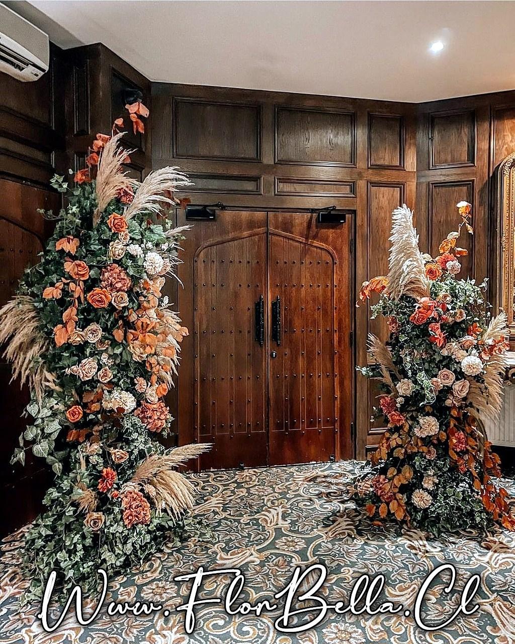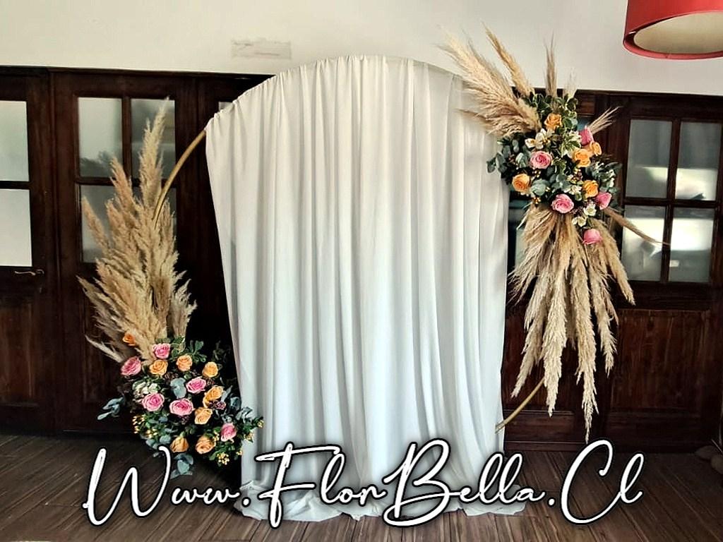 - Aro decorado con flores, follaje, pampas y tela 2 mt. diametro, extensible