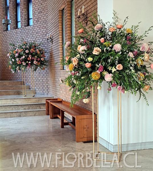 Las flores son un excelente complemento para la decoración de bodas en la iglesia. Aportan un ambiente acogedor y delicado, transformando fácilmente el lugar de una ceremonia religiosa tradicional en un espacio más especial. Los elementos naturales aportan calidez y vida al espacio, y suelen colocarse cerca del pasillo y el altar, donde son fácilmente visibles.