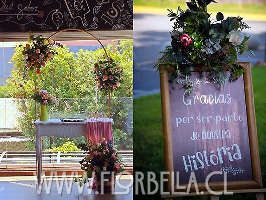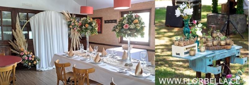 Adornos, accesorios, estructuras, mini floreros, rodelas, mini palets, identificadores de mesa y todo lo necesario para el montaje es proporcionado por FlorBella para el evento, y de propiedad de FlorBella, retirando los mismos artículos una vez terminada la celebración.